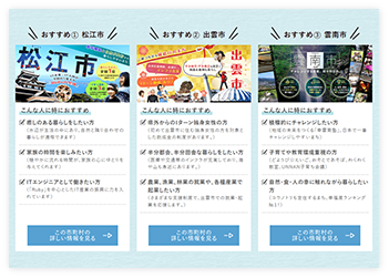 移住先であなたにおすすめの市町村が3つ自動で表示されます